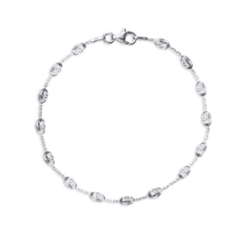 Sterling Silver Diamond Cut Trace Bracelet With Beads