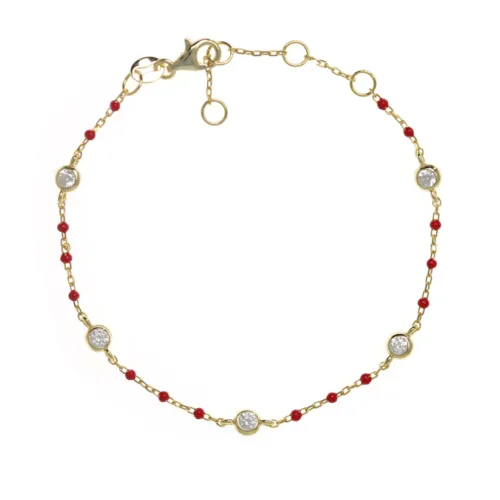 Sterling Silver Gold Plated Red Bead Chain Bracelet