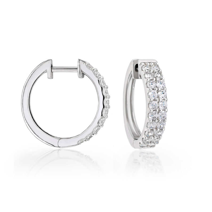 These are a beautiful pair of silver hoop earrings set with a double row of white sparkly CZ stones. An easy to wear hoop earring that will be perfect to wear for all occasions.