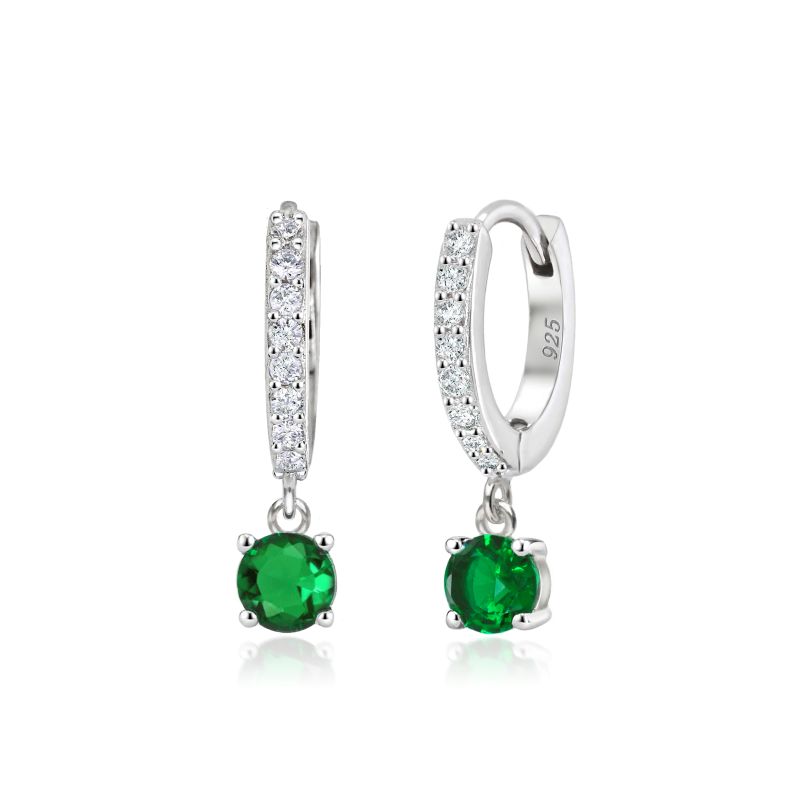 A beautiful huggie style hoop in sterling silver with CZ stones and a green drop stone. These earrings have a unique style to them, a hoop with a modern day twist. Ideal for everyday wear or for that special occasion.